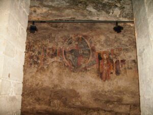 L’iniziativa nacque alla vista del suo interno: scrostato lo spesso strato di scialbo, emersero nell’abside affreschi sovrapposti ad altri più remoti, così belli da togliere il fiato. Sono allineati come a formare una iconostasi, con al centro il Pantocratore nella mano parlante dentro una mandorla, e in realtà si tratta di arte bizantina, anzi deuterobizantina, successiva cioè alla dominazione araba, suppergiù del Trecento. Ma dall’apparato rupestre affiorano elementi risalenti alla prima arte greco-ortodossa, quindi all’XI secolo. Epperò c’è anche una pittura a secco, raffigurante un non meglio precisato San Giacomo martire, che per lo stile rinascimentale può essere considerata opera del Cinquecento.