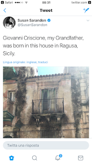 Contraria a fare anche solo un accenno al padre irlandese che abbandonò la madre e nove figli, Susan Sarandon continua invece a mostrare ogni predilezione per la dinastia materna, originaria di Ragusa.
